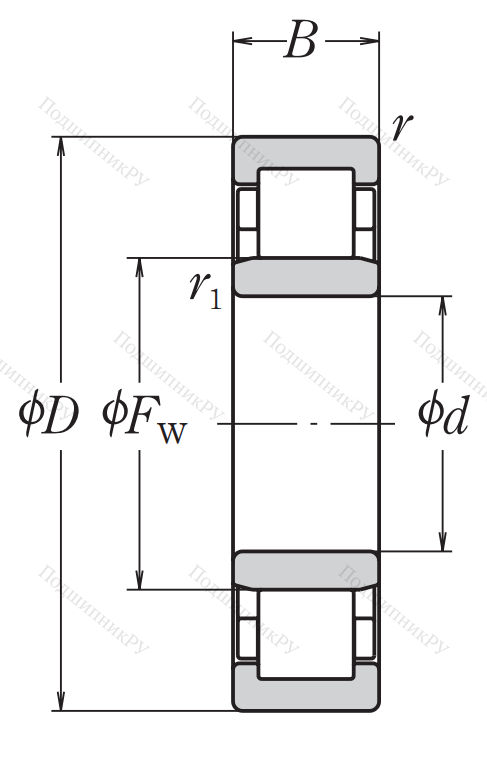 Роликовый цилиндрический подшипник NU 309 EW C3, это разновидность однорядного роликоподшипника в метрическом исполнении.