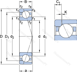 | Диаметр шарика | Dw | 19.05 | mm | |